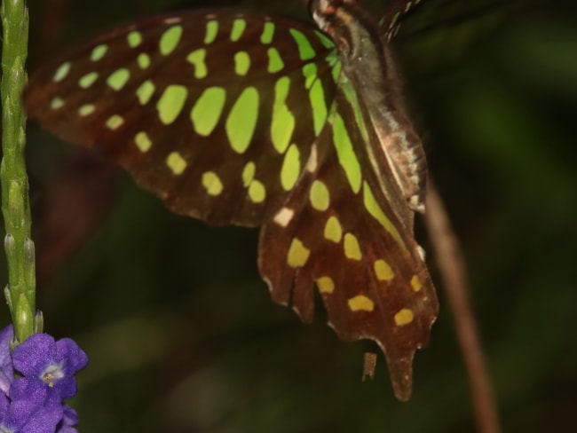 I’d go so far as to say that this has been the single most frustrating species I’ve seen, given the number of them I’ve seen on the wing in comparison to the small number and paucity of photos I’ve managed to take. Oddly enough, on various Facebook Groups I see any number of shots of these butterflies, almost entirely from overseas where it is usually called the Tailed Jay.